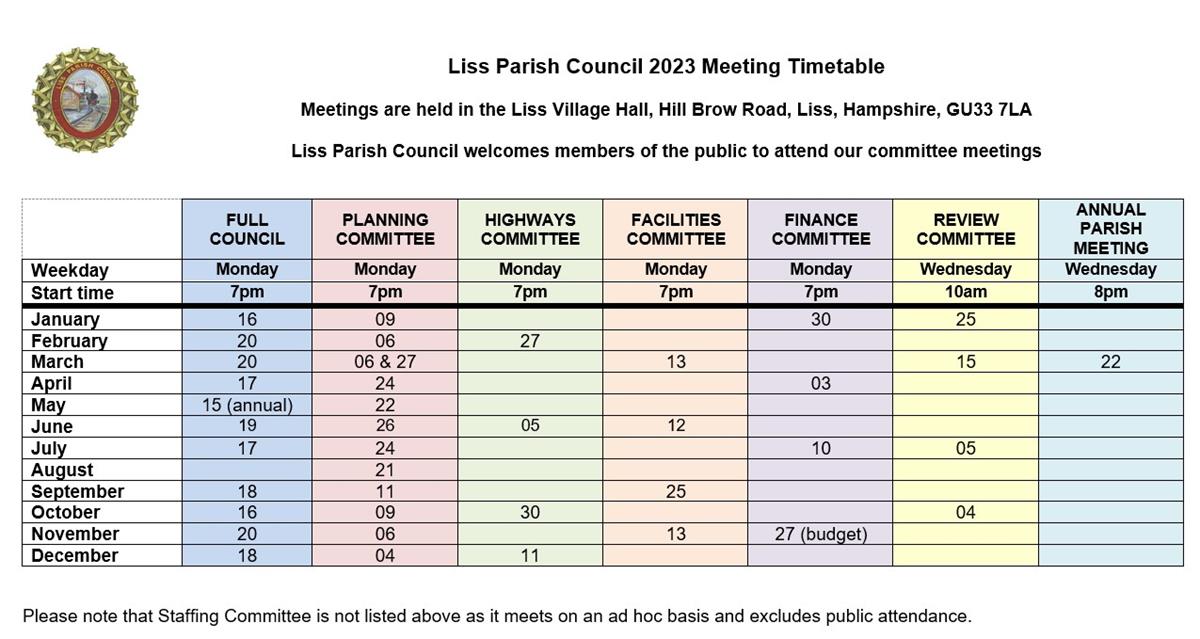 Liss Parish Council meets at Full Council eleven times a year in addition to the many other Committee meetings, these help us deliver speedy and transparent decisions. Members of the public are welcome to attend Liss Parish Council and Committee meetings and make a public representation when invited to by the Chair. We ask members of the public wishing to make a public representations to let the committee chair know prior to the meeting commencing. Members of the public wishing to make a deputation on any item within the committees remit, should contact the clerk by 2pm on the day of the meeting: Contact Us - Liss Parish Council.